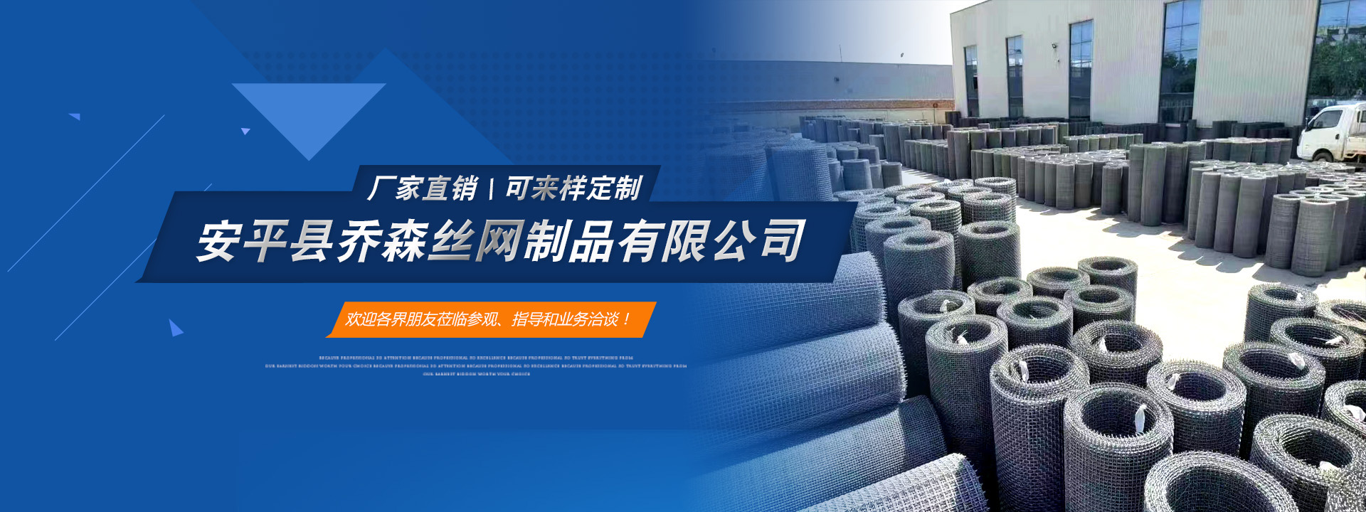 喬森絲網成立于2014年9月,位于中國絲網之鄉-河北省安平縣,是一家專注于生產金屬絲編織網、金屬網板沖孔及相關金屬裝飾絲網深加工產品的企業。從一個家庭式的小工坊到公司多年來,一直本著以“質量求生存,信譽謀發展”的生產原則兢兢業業穩步向前,贏得了 一大批忠實客戶的廣泛贊譽。然騏驥一躍,不能十步,駑馬十駕,功在不舍。我們將以更周到的服務,更過硬的質量,不忘初心,為廣大的客戶提供更優質的服務。